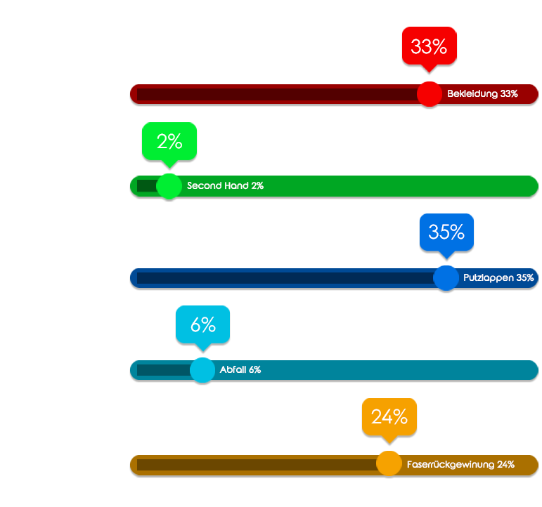 - - ca. 24 % der Textilien werden zur Faserrückgewinnung genutzt
